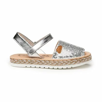 Abarcas Menorquinas Niña Piel Y Lentejuelas Plantilla Acolchada Velcro 224 Plata, De Angelitos
