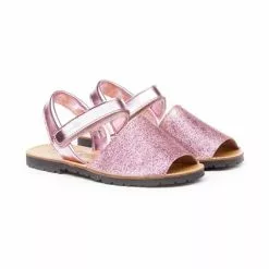Abarcas Menorquinas Niña Piel Y Saco Metalizado Plantilla Acolchada Velcro 223 Plata, De Angelitos