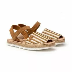 Abarcas Menorquinas Niña Piel Ante Y Rafia Plantilla Acolchada Velcro 227 Cuero, De Angelitos