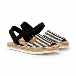 Abarcas Menorquinas Niña Piel Ante Y Rafia Plantilla Acolchada Velcro 227 Negro, De Angelitos