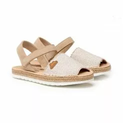 Abarcas Menorquinas Niña Piel Ante Y Saco Plantilla Acolchada Velcro 225 Beige, De Angelitos