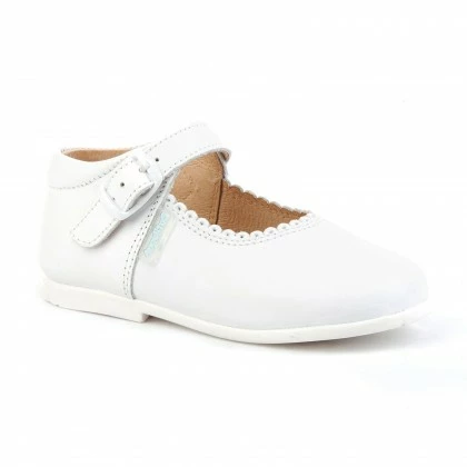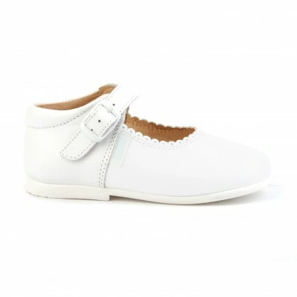 Merceditas Colegiales Infantil Niña Piel Hebilla 500 Blanco, De Angelitos
