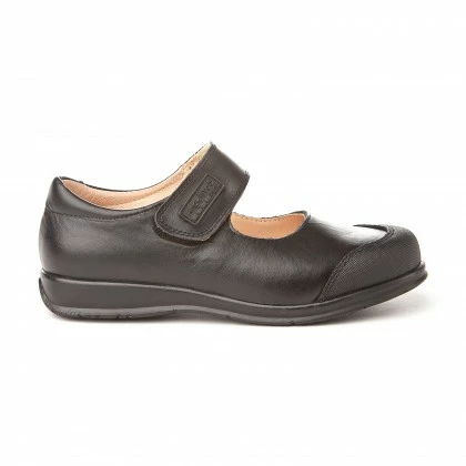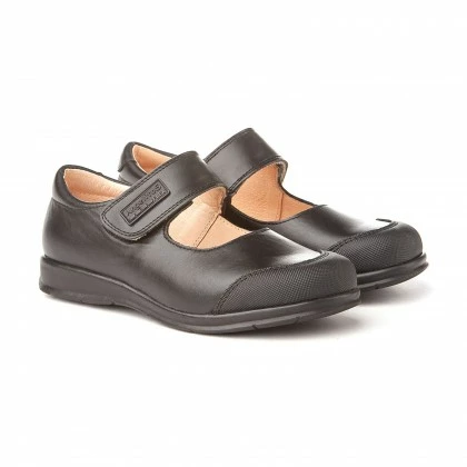 Merceditas Colegiales Niña Piel Puntera Refozada Velcro 463 Negro, De Angelitos