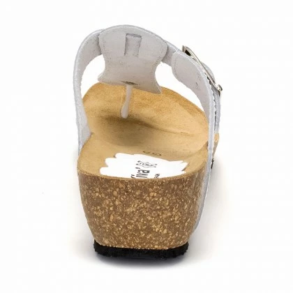 Sandalias Cuña Baja Mujer Piel Grabada Plantilla Acolchada Velcro 22725 Blanco, De Blusandal