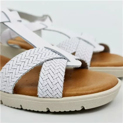 Zuecos Cuña Baja Mujer Piel Grabada Punta Abierta Plantilla Acolchada 22802 Blanco, De Blusandal
