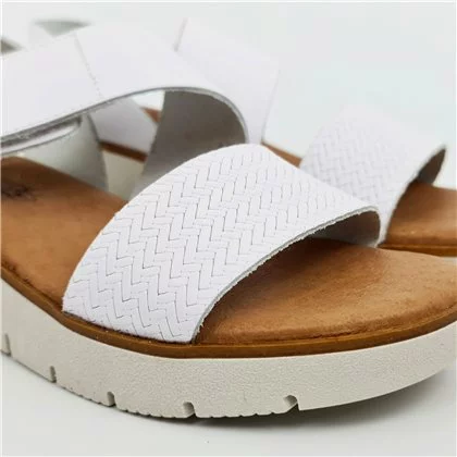 Zuecos Cuña Baja Mujer Piel Grabada Punta Abierta Plantilla Acolchada 22802 Blanco, De Blusandal