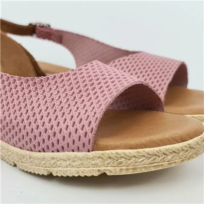 Sandalias Cuña Baja Mujer Piel Grabada Plantilla Acolchada Hebilla 22100 Cuero, De Blusandal