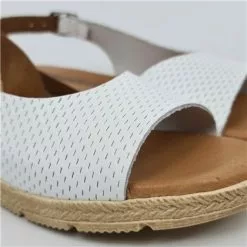 Sandalias Cuña Baja Mujer Piel Grabada Plantilla Acolchada Velcro 22725 Blanco, De Blusandal