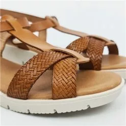 Sandalias Cuña Baja Mujer Piel Grabada Plantilla Acolchada Hebilla 22100 Cuero, De Blusandal