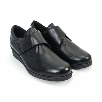 Zapatos Cómodos Mujer Piel Cuña Velcro Plantilla Extraíble 70243 Negro, De Tupié